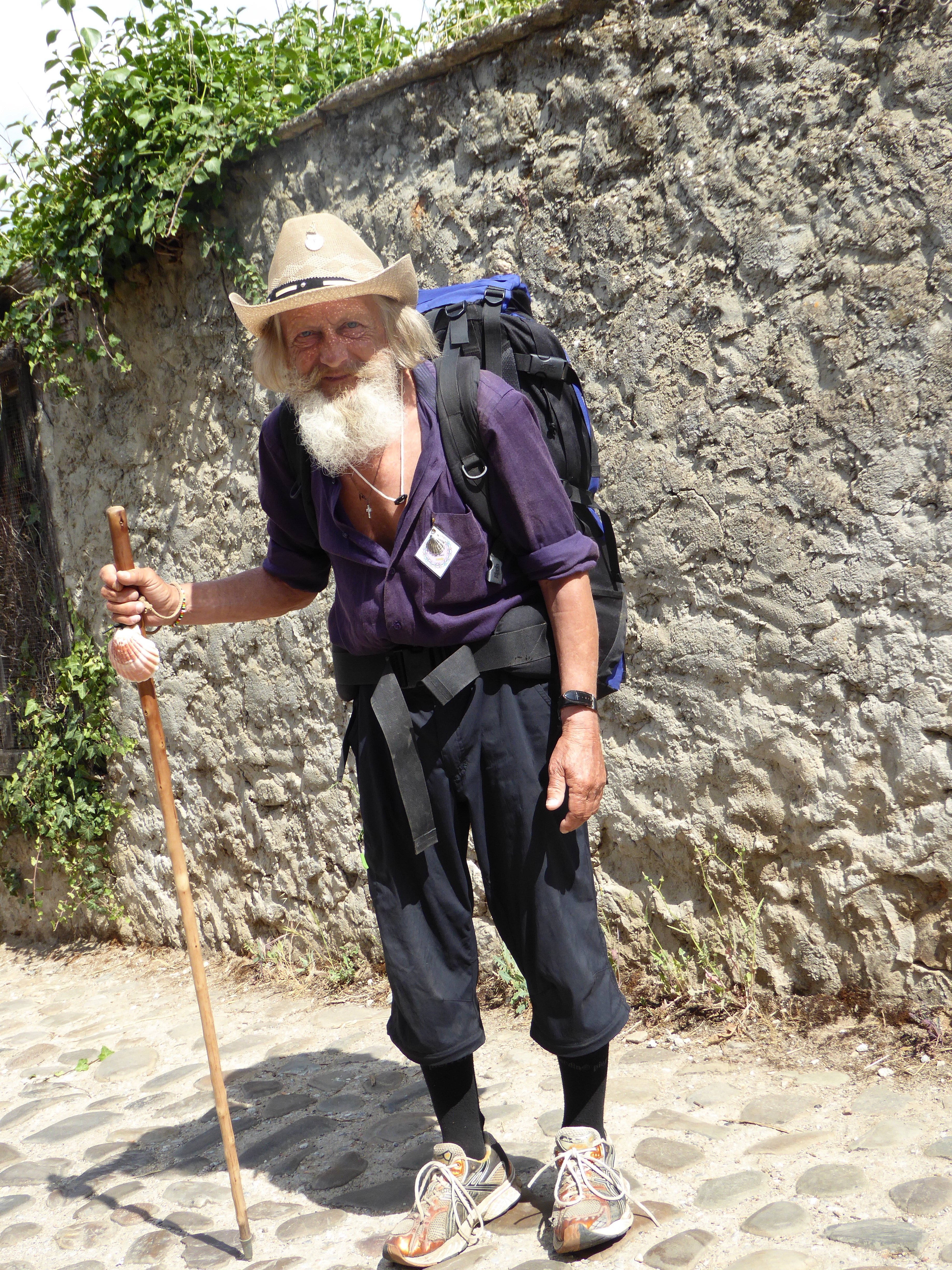 A fellow pilgram who stayed here in Villafranca while we were here. Since he seemed such an ancient pilgrim character, he was often asked to pose for pictures.  While posing for this picture a woman asked how old he was.  We were somewhat taken aback when this ancient celebrity turned out to only be 70!