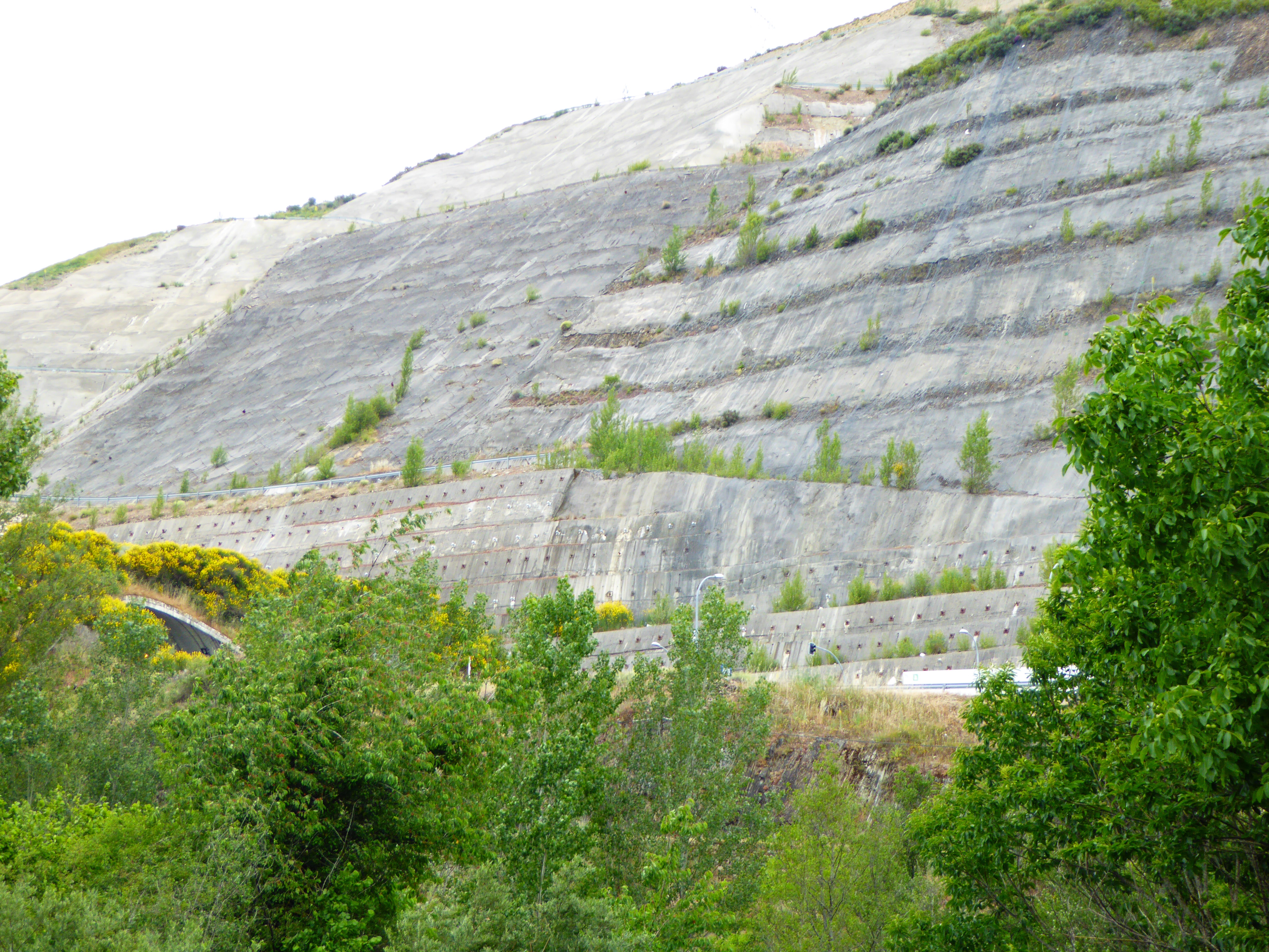 Thought there no better way to show how steep the sides of the gorge leading into Galicia that to show this picture. To put the picture into perspective, that white object in the bottom right is a double trailer transport travelling on the main east west trans Spain highway. Those are cement covered sidehills!