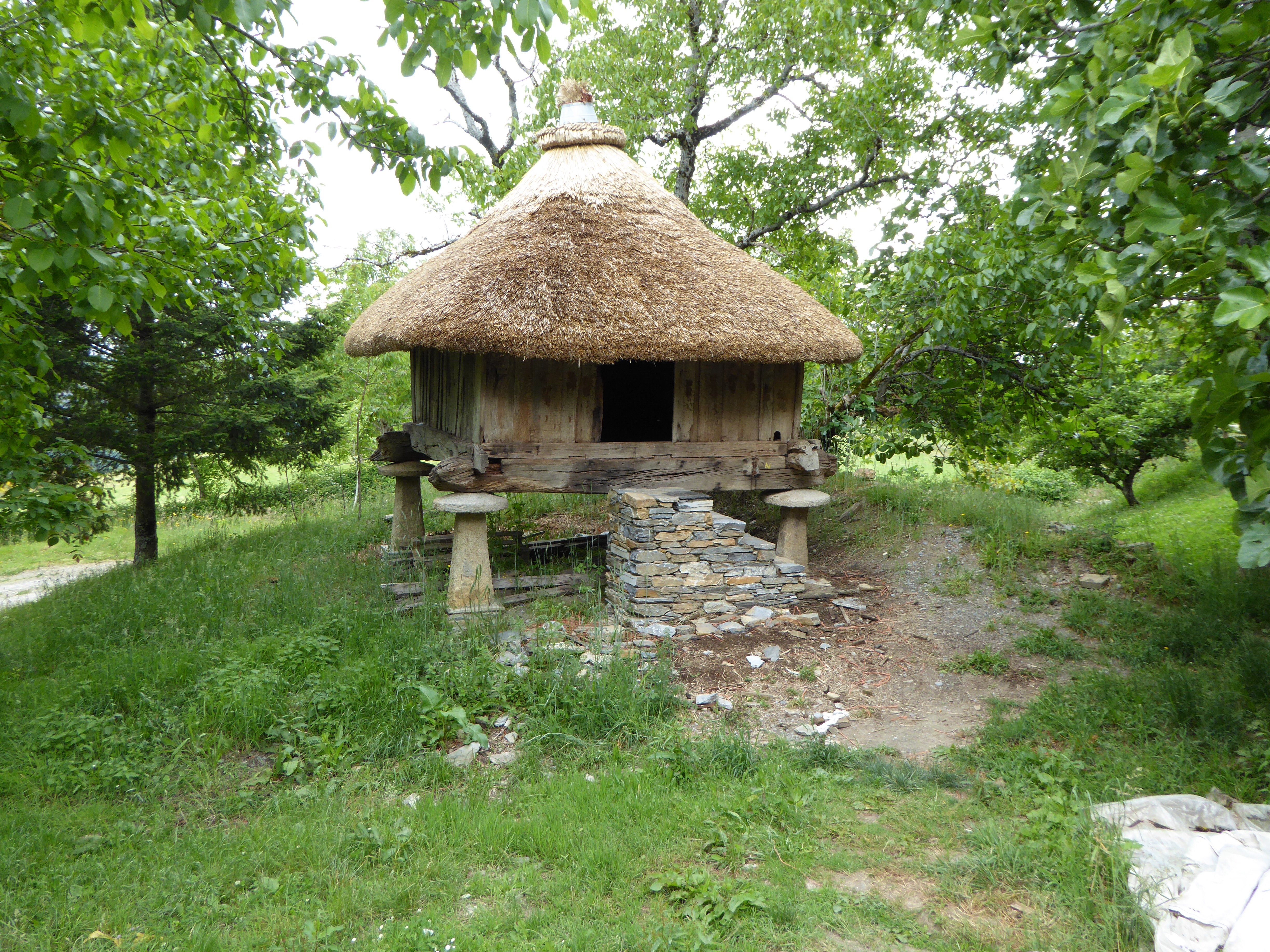 Grain storage site - as designed in the Middle Ages. Complete with air vents and a post and lip to prevent unwanted creatures from entering