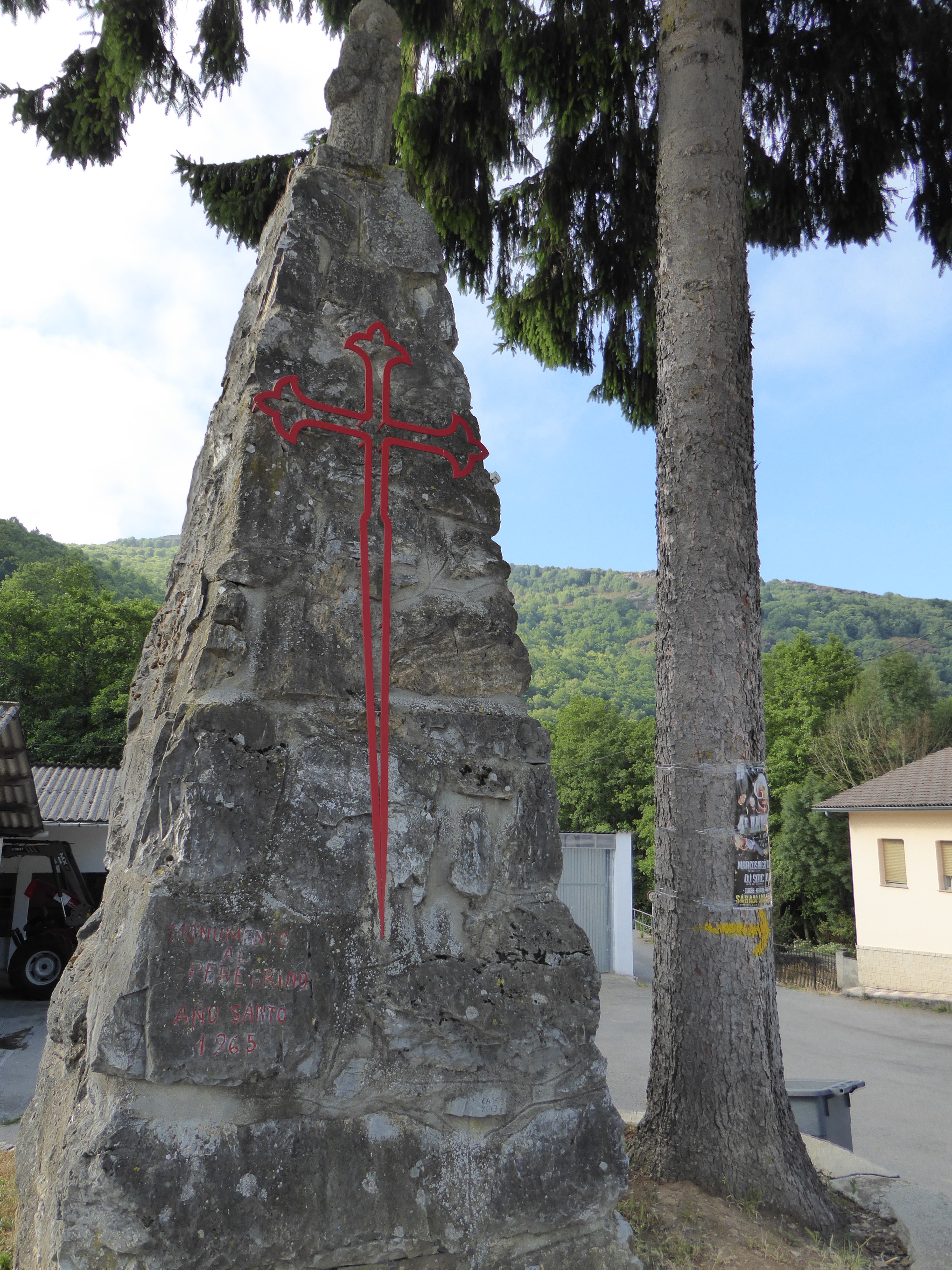 Set in a huge stone on the outskirts of Triacastela, the symbol of the Templar. Kind of an ominous sign to see, particularly when drawn in red…..