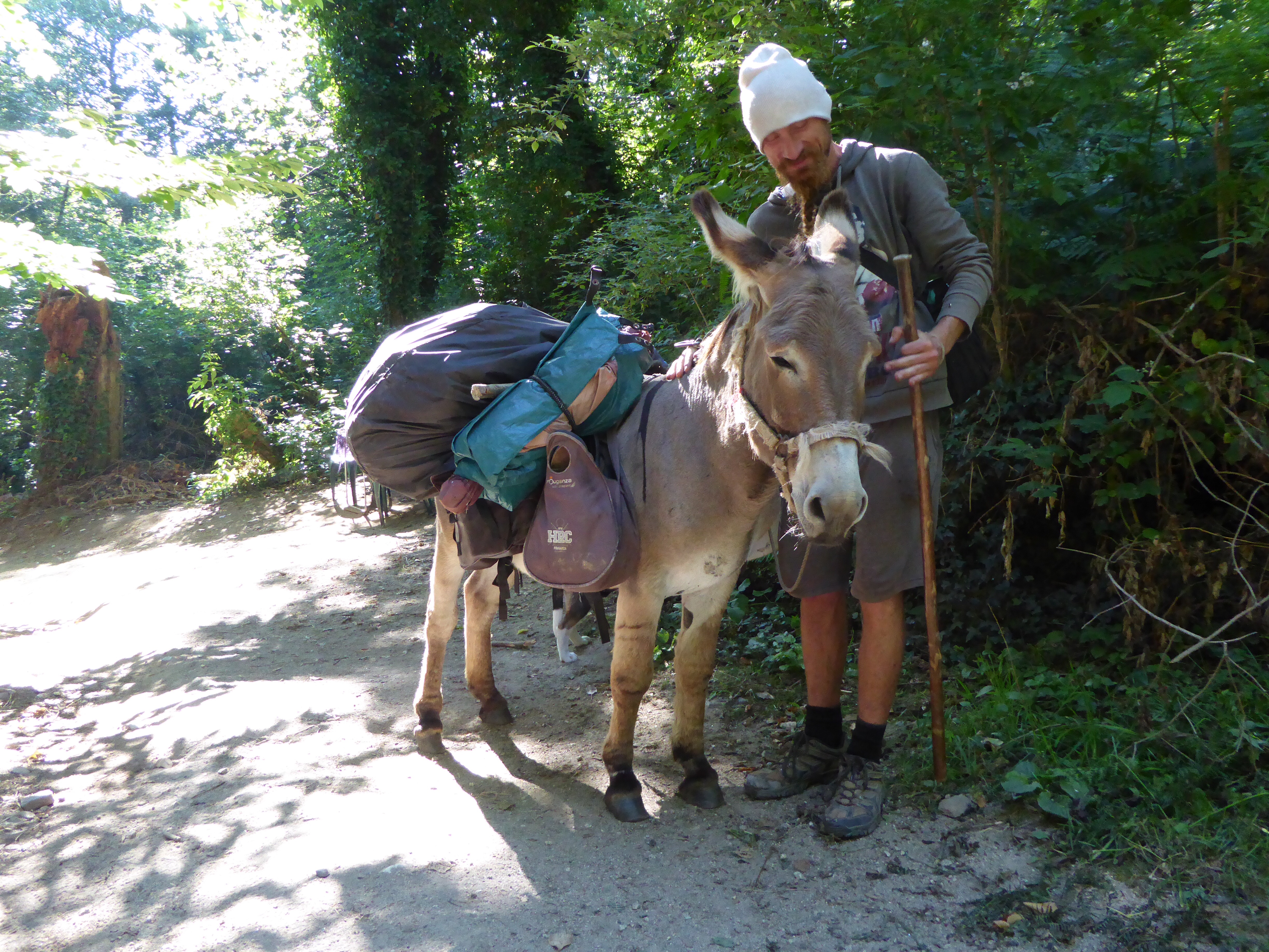 We had several pleasant encounters today. First, about an hour into our trek we came upon a Hungarian pilgrim and a donkey. (The donkey’s name was Serafina but she is Martin to us). The fellow does not carry food for the donkey but allows it to browse along the way. He bought Martin (Serafina) for 700 Euros as Martin is trained. You can buy an untrained donkey for 250-300 Euros. We can just imagine what an interesting journey that would be.