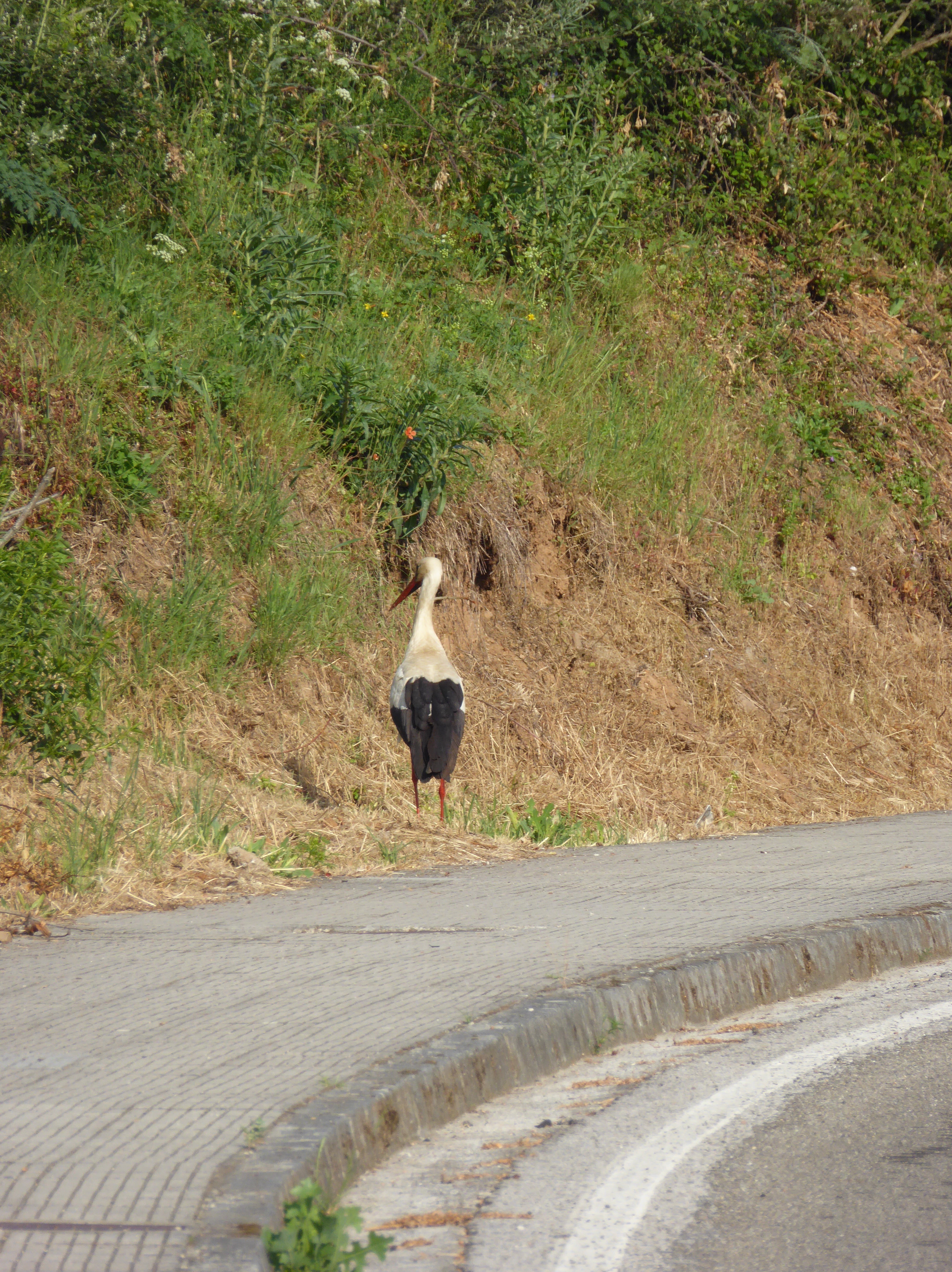 On the outskirts of town we had a special local approach us—-one of the town storks who was monitoring our path. When he/she took flight we realized that these are much larger birds than we had thought.