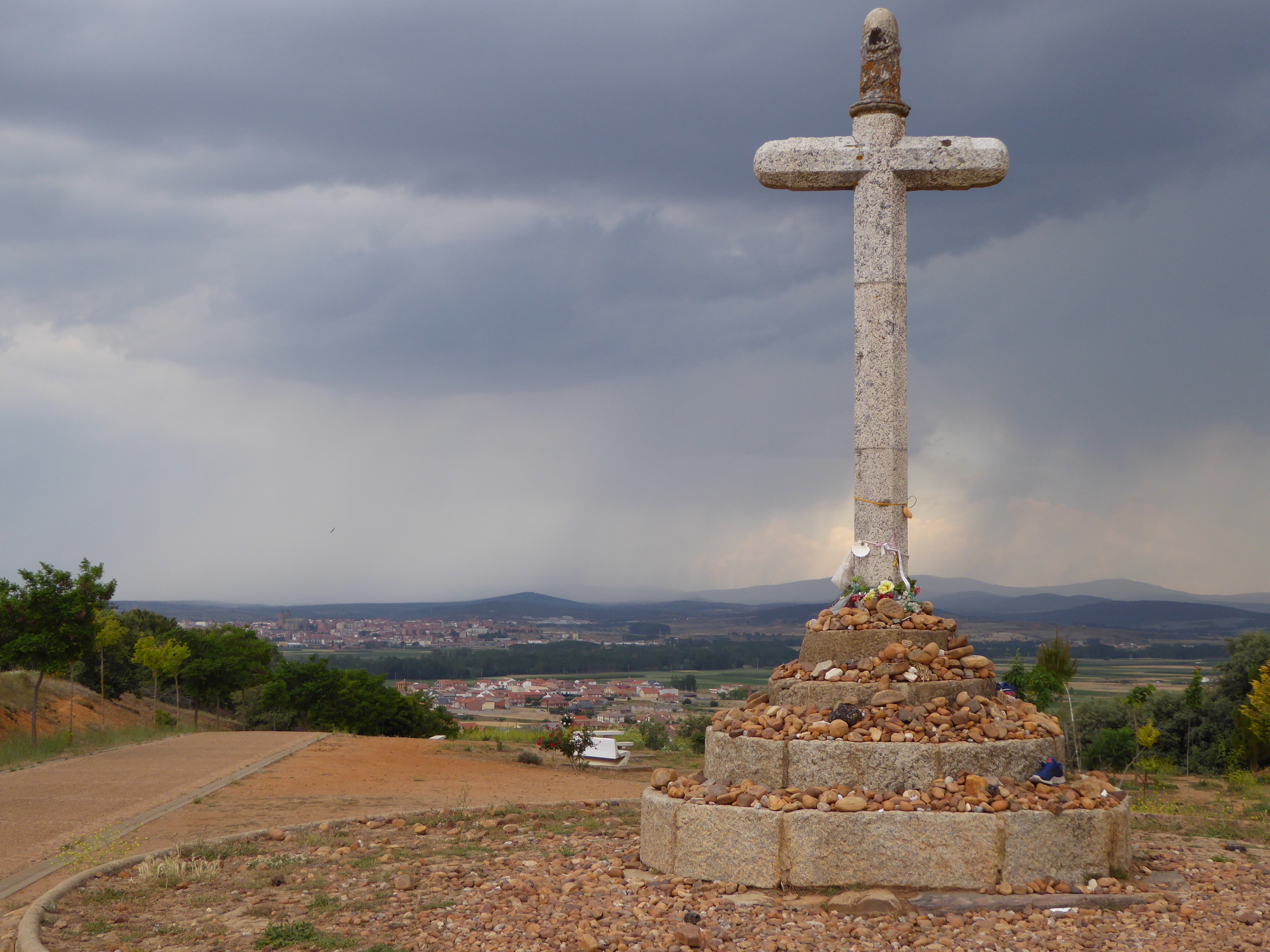 At the 4888 foot summit - the Cruz de Ferro ( Iron Cross)
