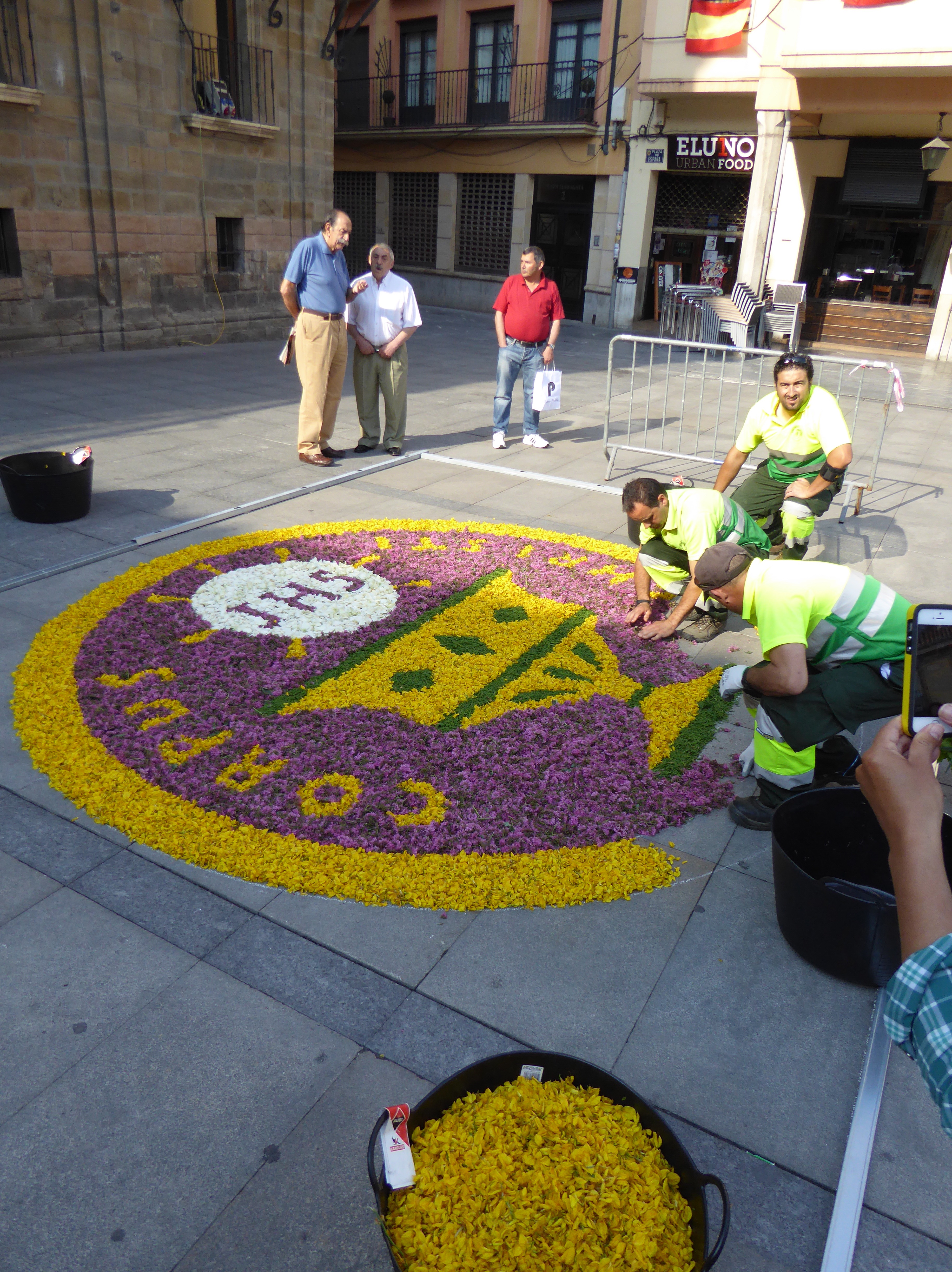 Getting ready for Corpus Christi day. It is absolutely amazing what a little bit of imagination can do. The yellow is from broom, the purple from Spanish lavender and the green – simply cut evergreens.