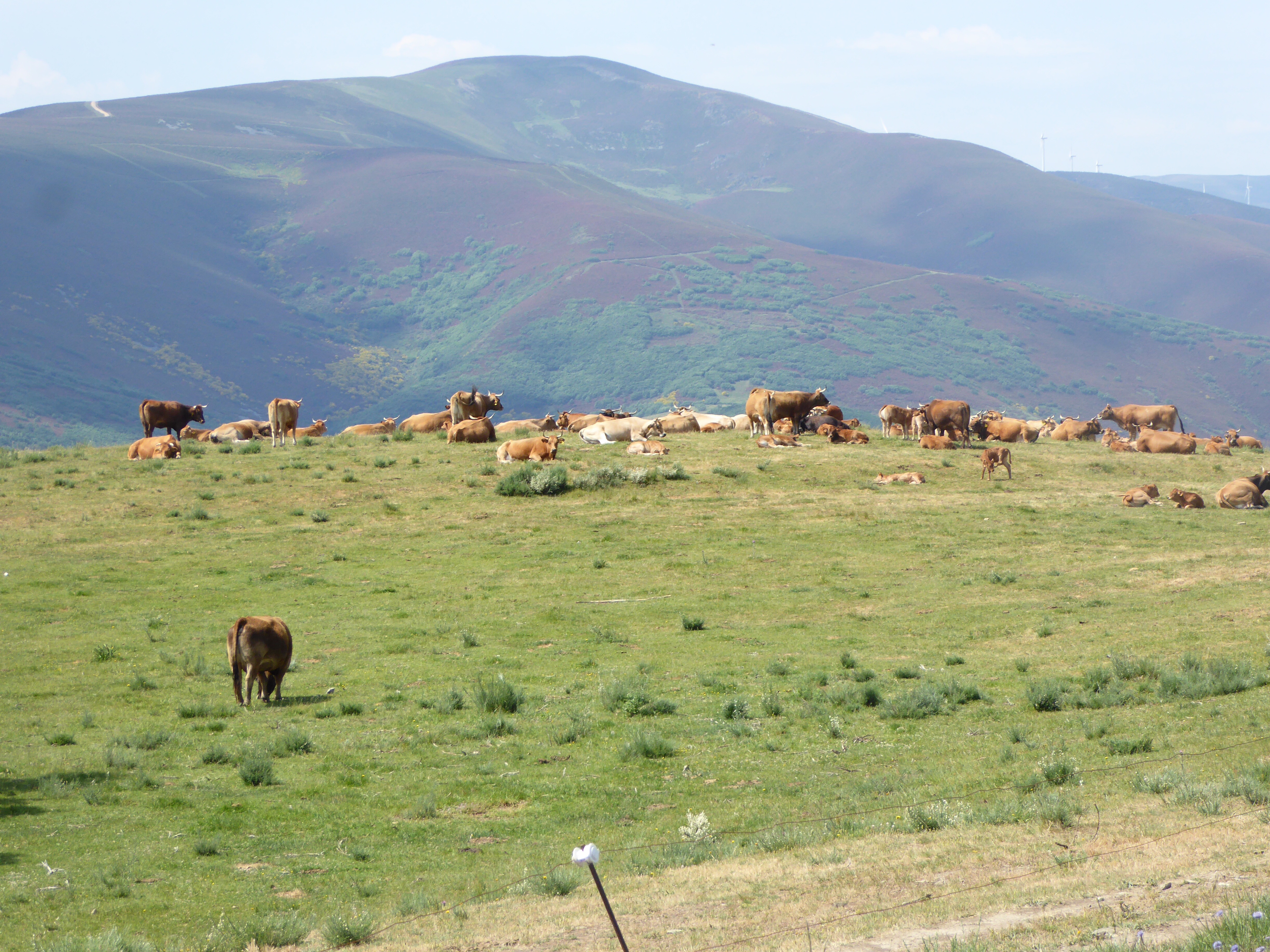 The scene near the top of the Leon Mountains.  Bet those cows don’t climb it every day.  What a beautiful sight…. That burgundy colour is Spanish Heather on the distant hills.