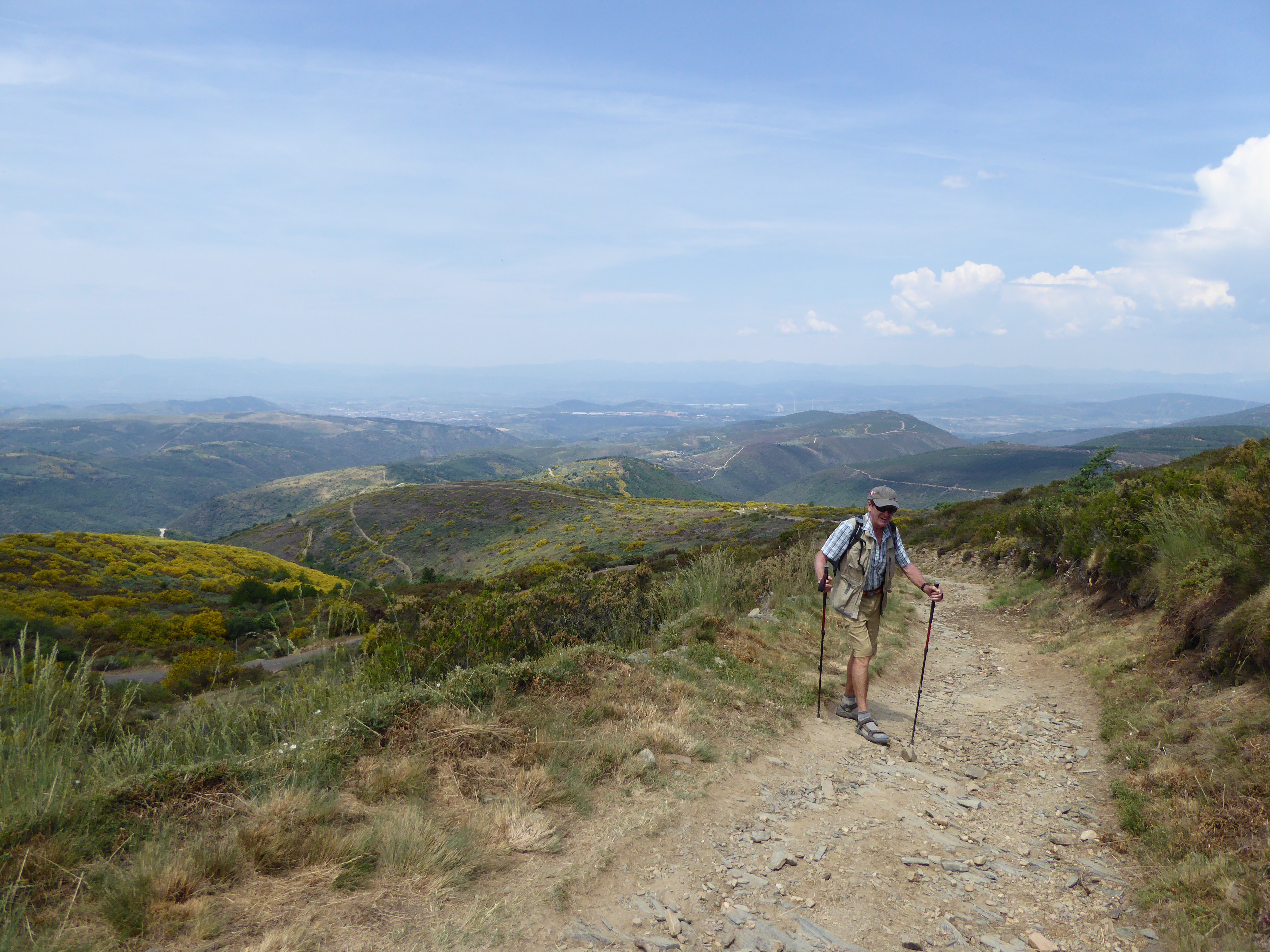 There is a “notch” in the tree line on the furthest / highest hill on the skyline. That is the location of the Cruz de Ferro that marks the high point of the Camino. This gives you an idea of the distance of yesterday’s descent.