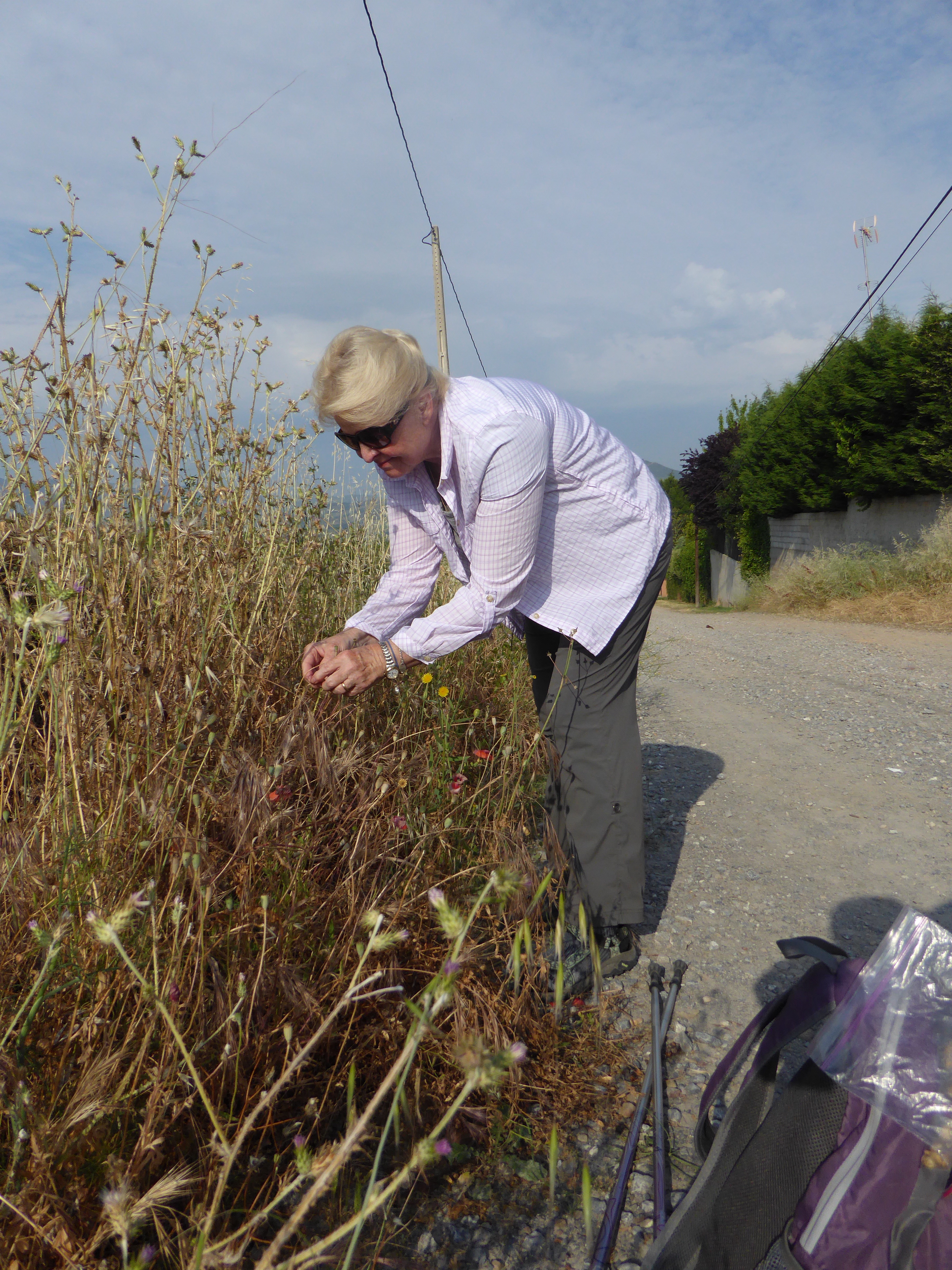 One of the delights today for Delana was finding poppy pods ripe for picking. We have had poppy companions throughout our walk this year, but back on the Meseta they had not yet gone to seed.