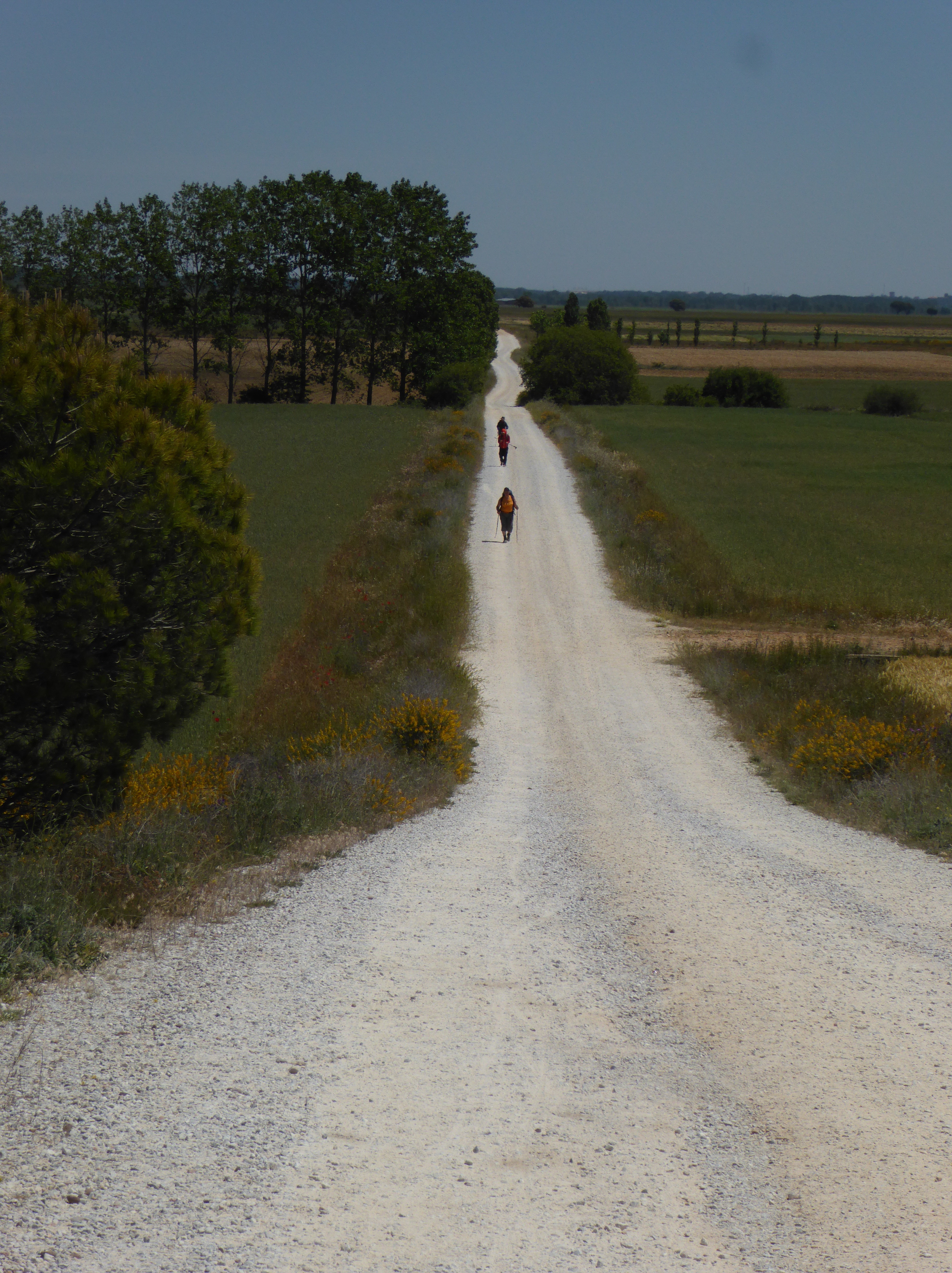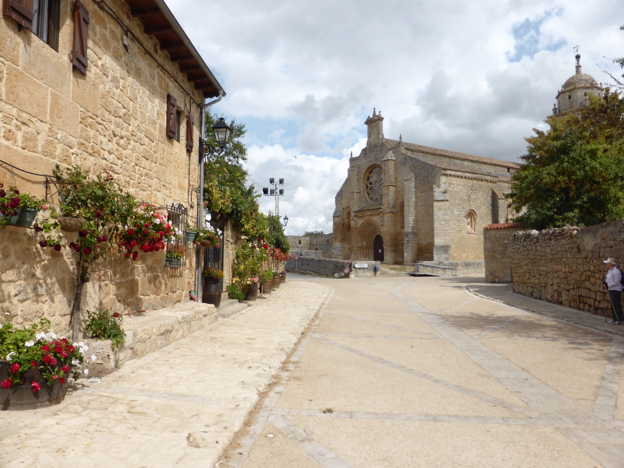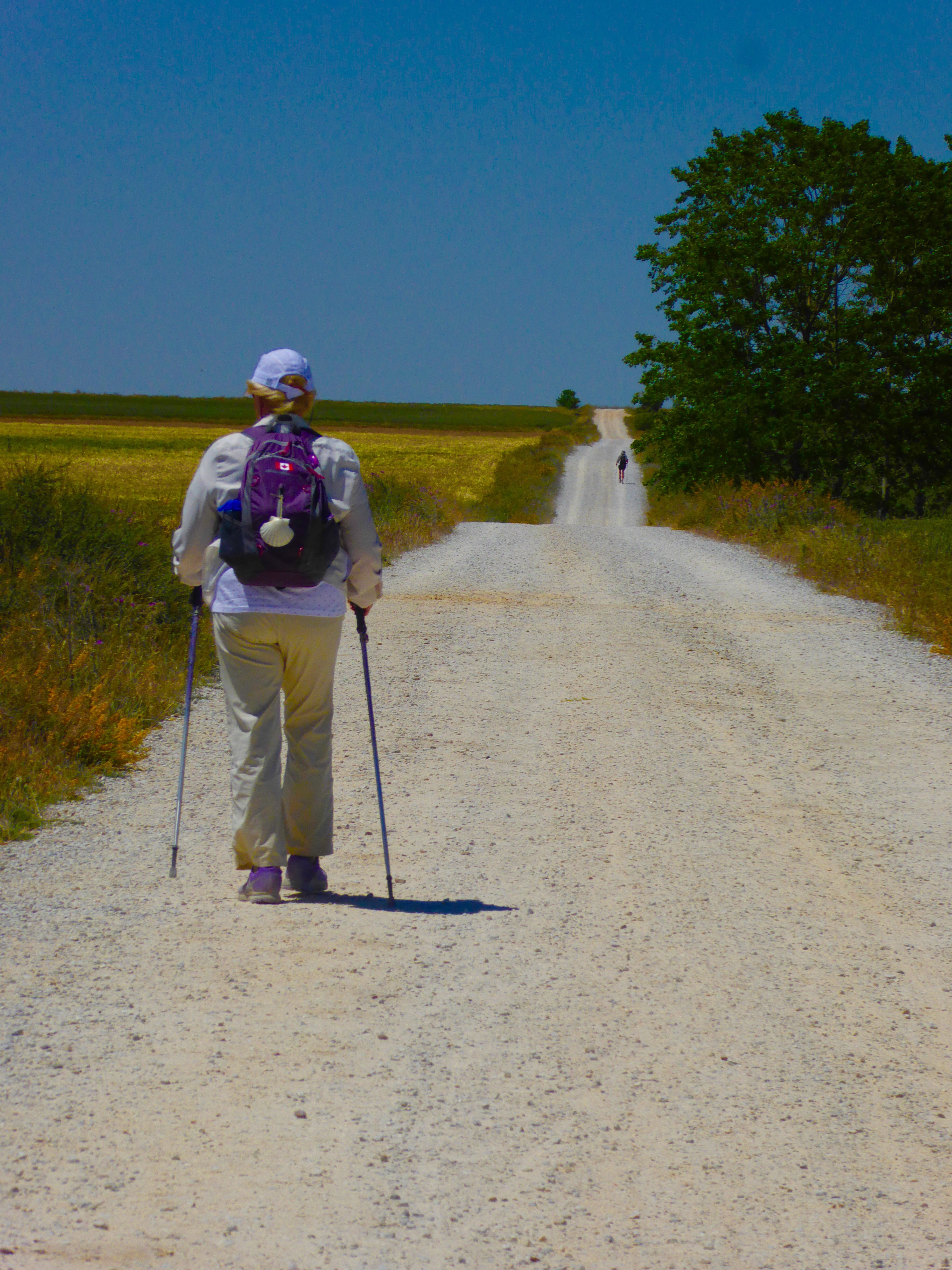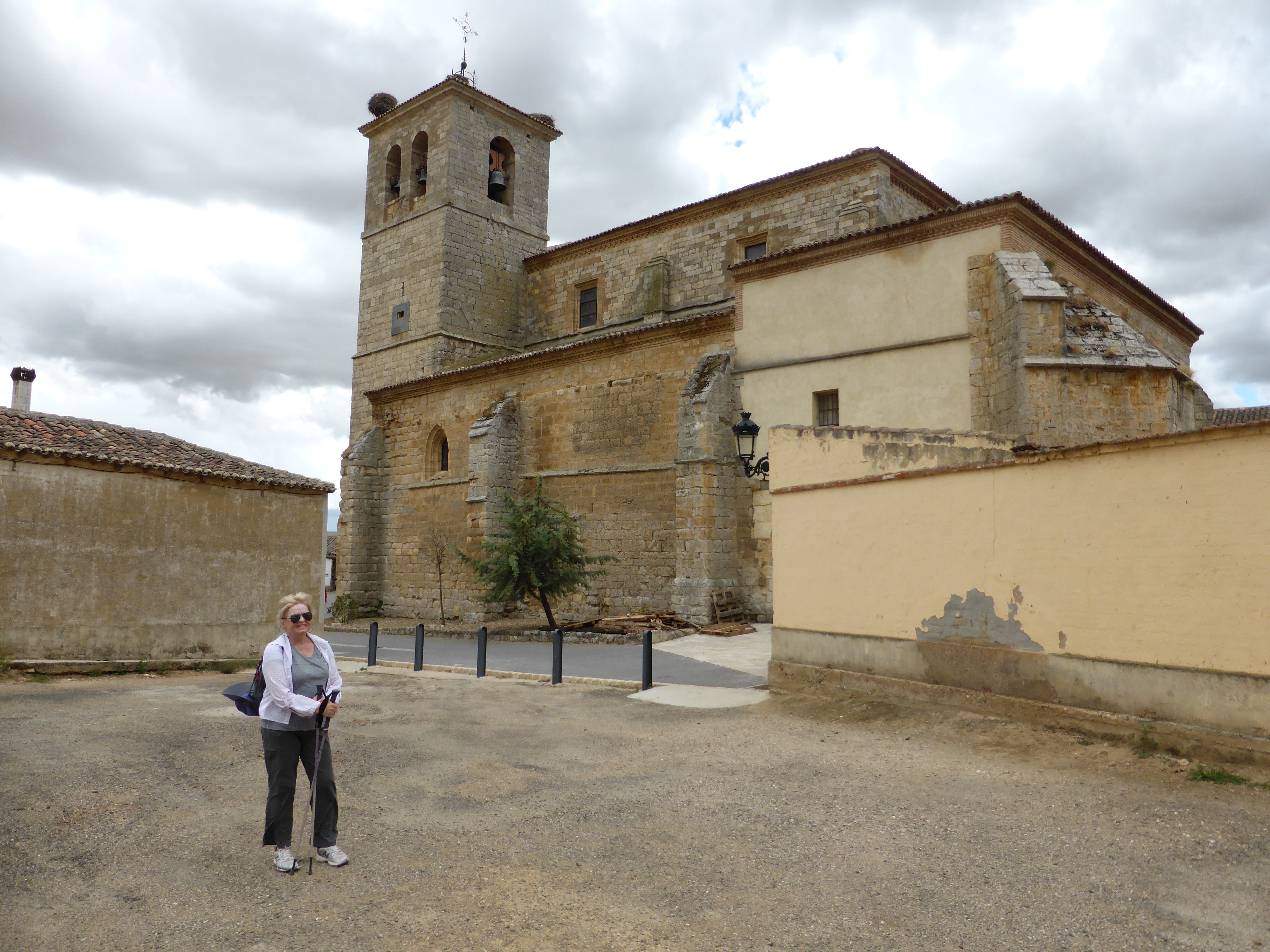 During our lazy breakfast just off our square, we realized that people were setting up for the weekly town market. After wandering over to the cathedral to get our credencials stamped and going by the post office for postage stamps, we spent the next few hours wandering the market. Rod purchased sausage, cheese, olives, cherries, nuts and raisins ( all local products). Delana bought two scarves to jazz up her pilgrim “look” and a few things for grandchildren. It was such fun seeing all the families out. We seldom see children about in the small villages we pass through—most of the young families have out of necessity migrated to more urban centres. These small villages have buildings of bricks and mortar alongside mud and straw pueblo like structures. Somehow they do not appear discordant together. There is a quiet sadness to see the neglected and unused playgrounds, though. If it were not for the economic benefit of Camino pilgrims passing through, it is doubtful these semi abandoned villages would survive.