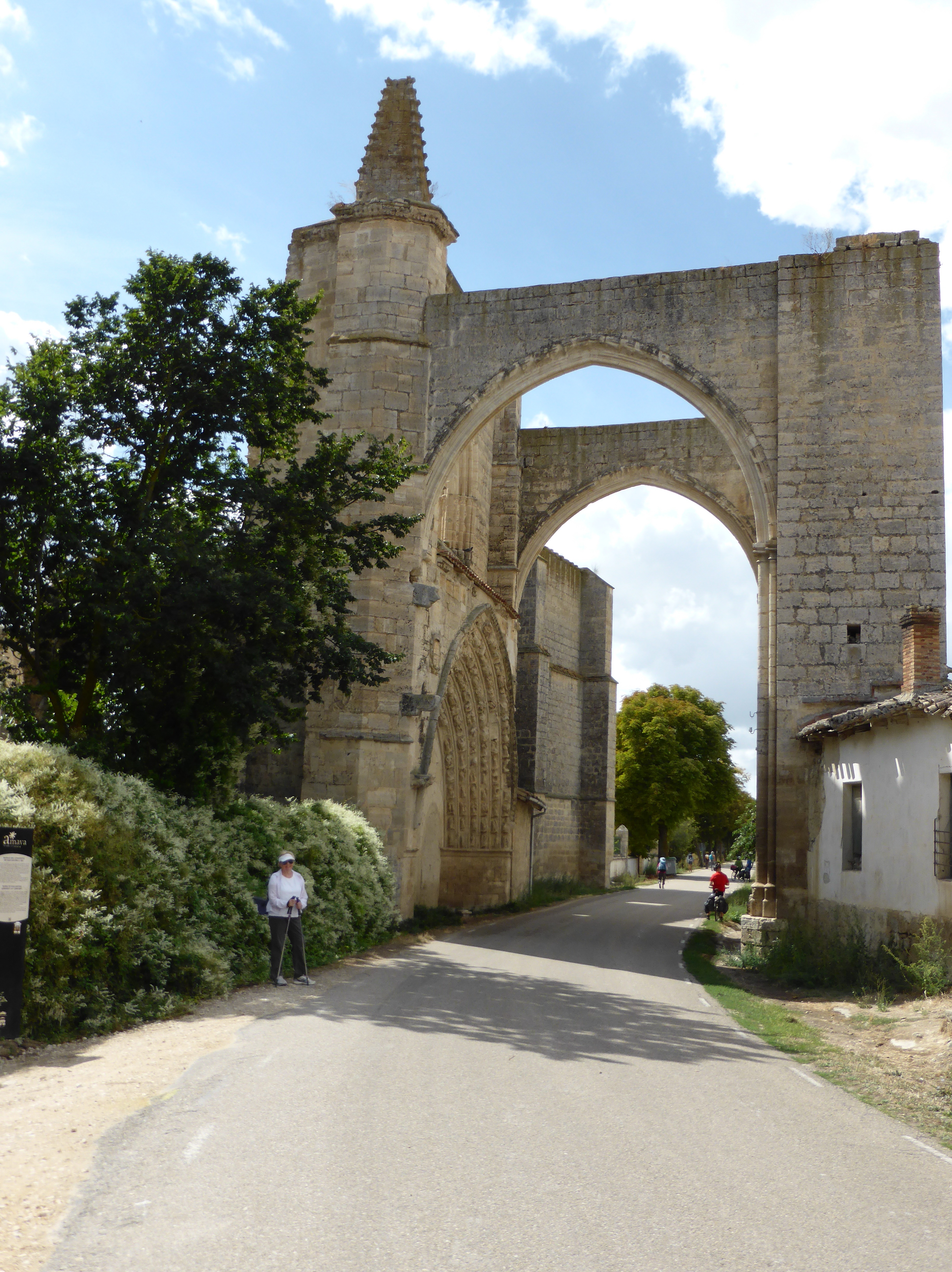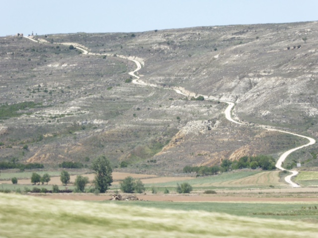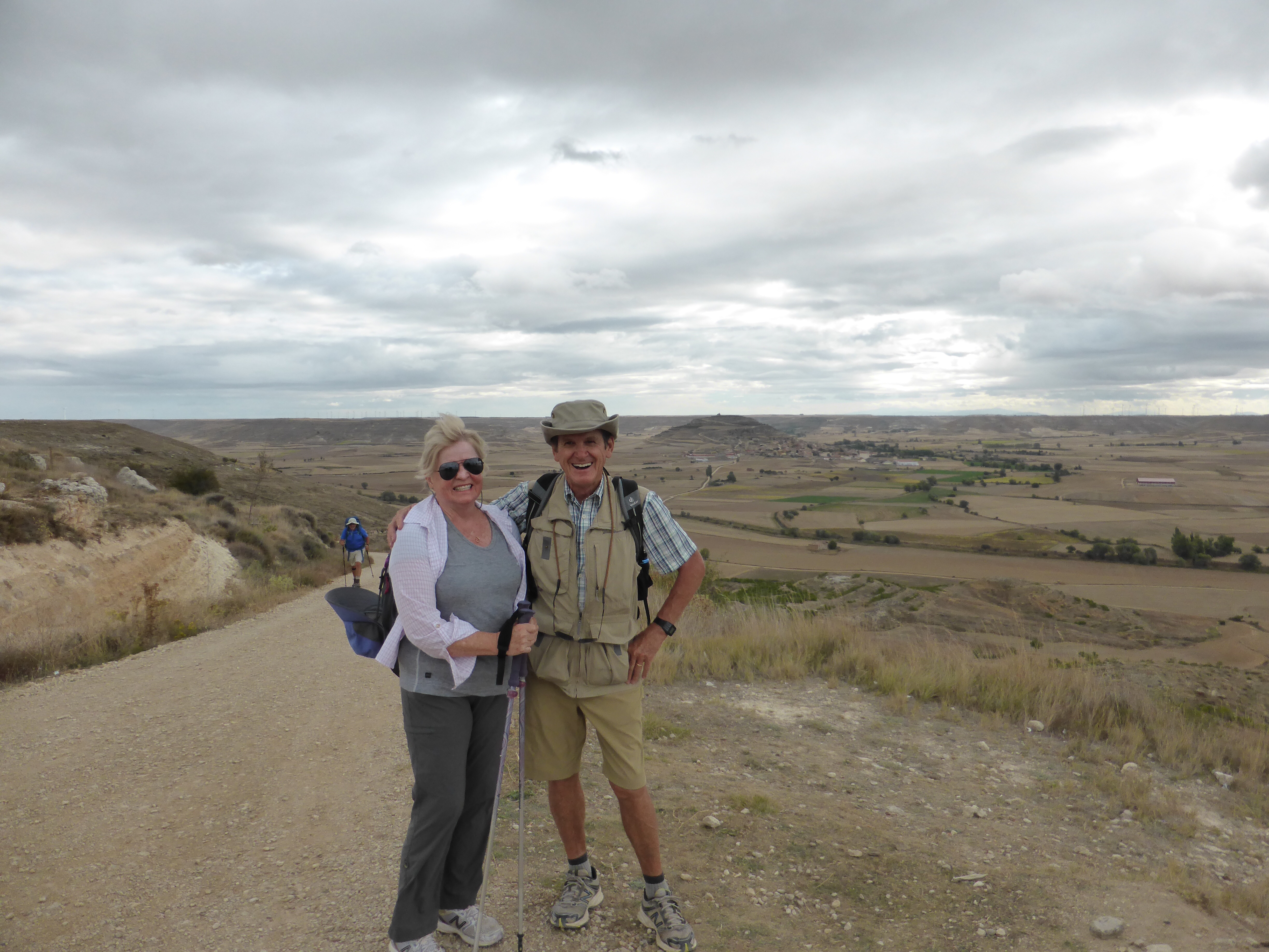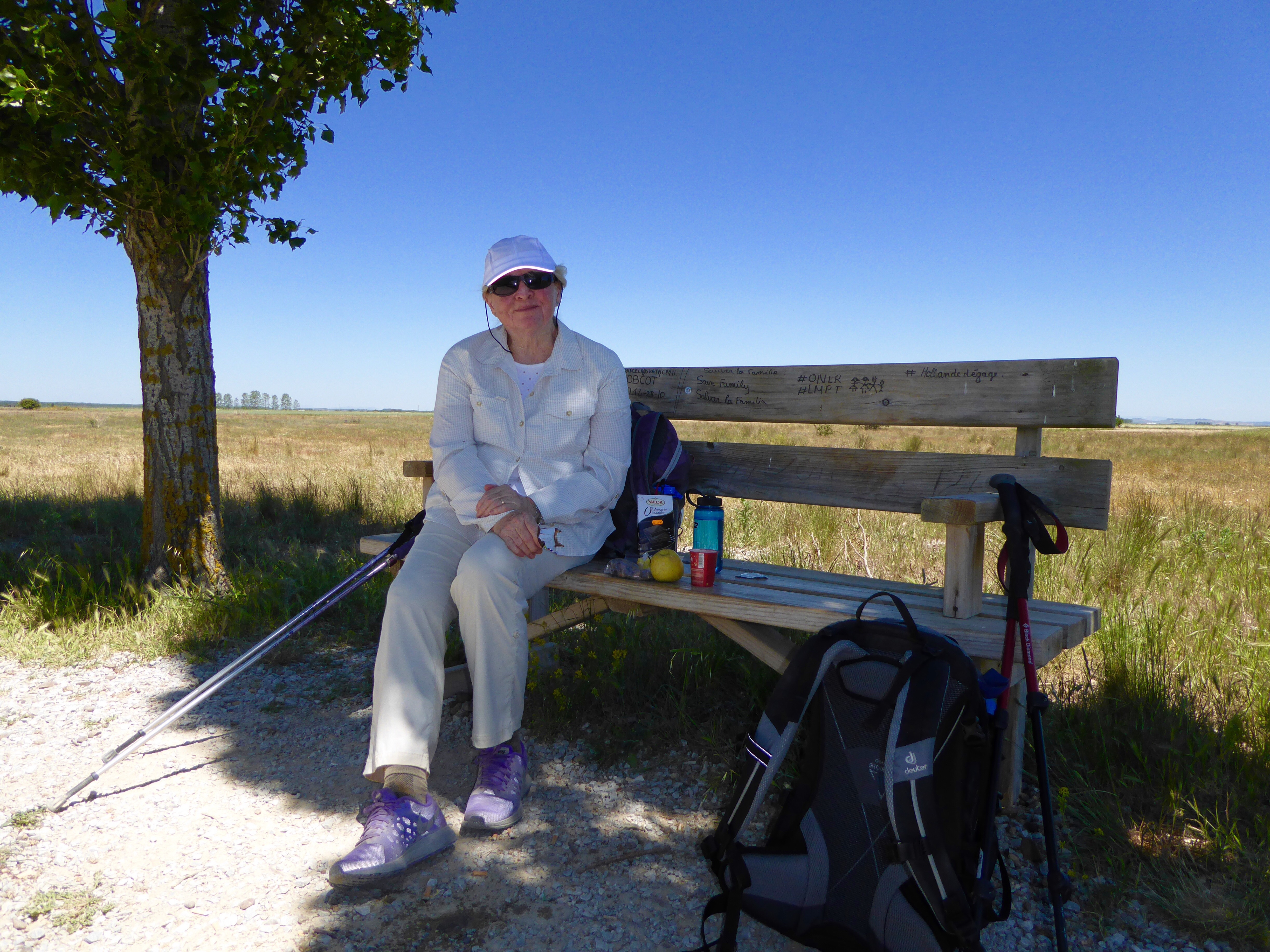 During our lazy breakfast just off our square, we realized that people were setting up for the weekly town market. After wandering over to the cathedral to get our credencials stamped and going by the post office for postage stamps, we spent the next few hours wandering the market. Rod purchased sausage, cheese, olives, cherries, nuts and raisins ( all local products). Delana bought two scarves to jazz up her pilgrim “look” and a few things for grandchildren. It was such fun seeing all the families out. We seldom see children about in the small villages we pass through—most of the young families have out of necessity migrated to more urban centres. These small villages have buildings of bricks and mortar alongside mud and straw pueblo like structures. Somehow they do not appear discordant together. There is a quiet sadness to see the neglected and unused playgrounds, though. If it were not for the economic benefit of Camino pilgrims passing through, it is doubtful these semi abandoned villages would survive.