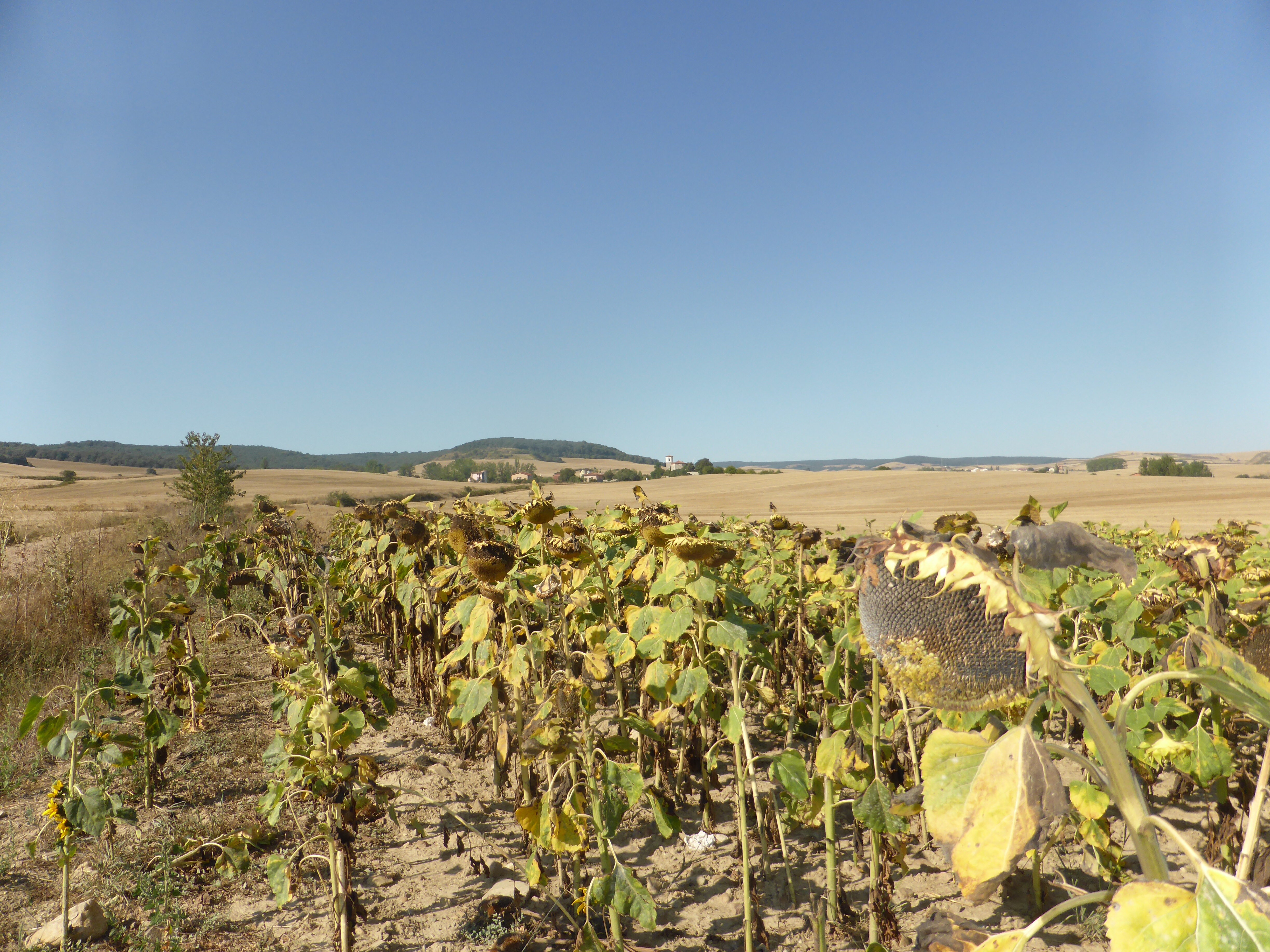 The landscape has changed dramatically as we left La Rioja wine country and entered into Castilla with its vast fields of grain and sunflowers. The grain has been harvested and the farmers are now plowing the stubble into the soil. The country is hilly with steep slopes so they have to be adept at what they do.