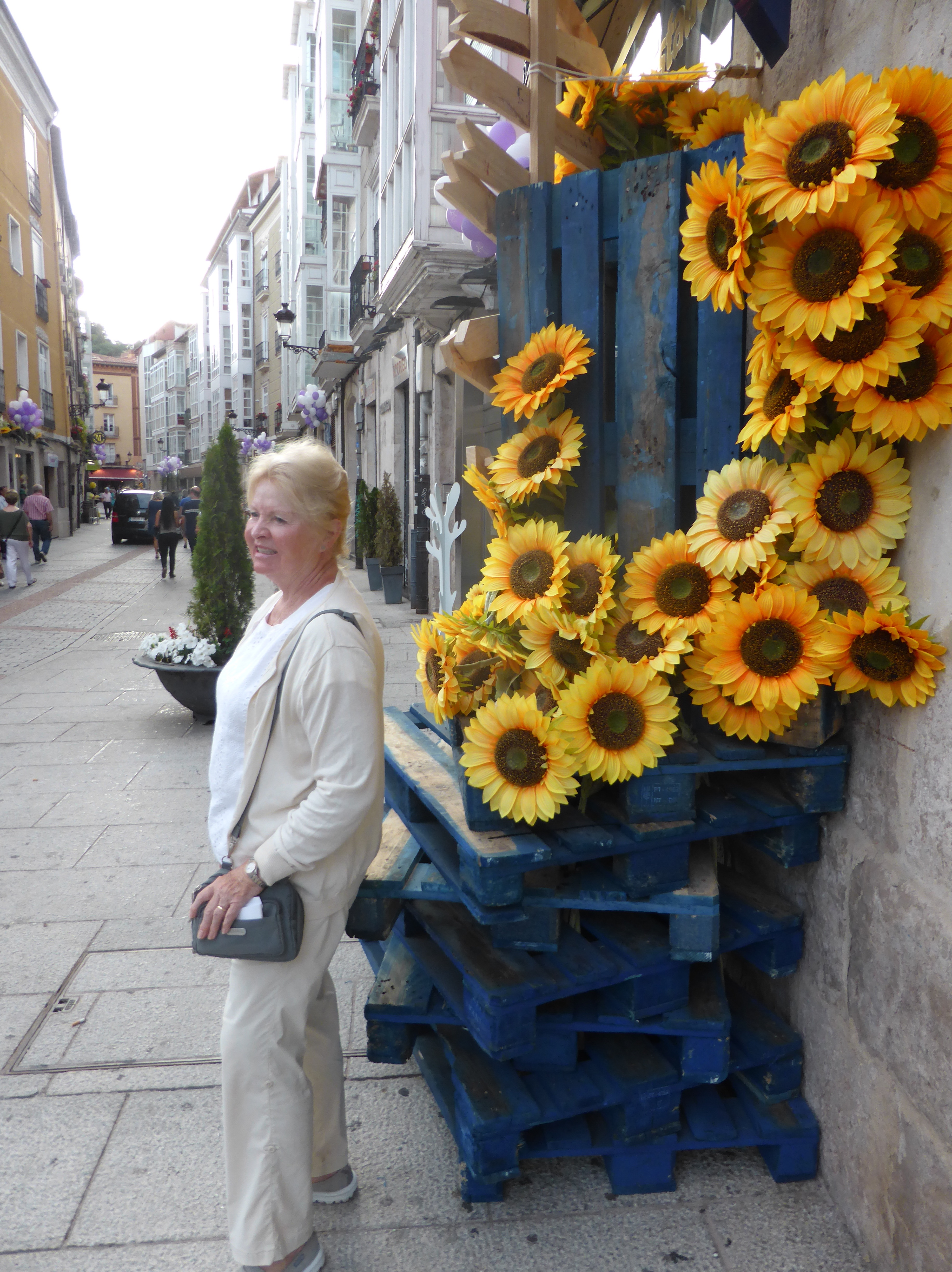 Once again our hotel is by the church and the plaza under our window is festive tonight:-) It is decorated with balloons and sun flowers, a crowd is milling about, there are competing musicians, and earlier fireworks. We are beginning to think this is just how Friday is celebrated in Spain.