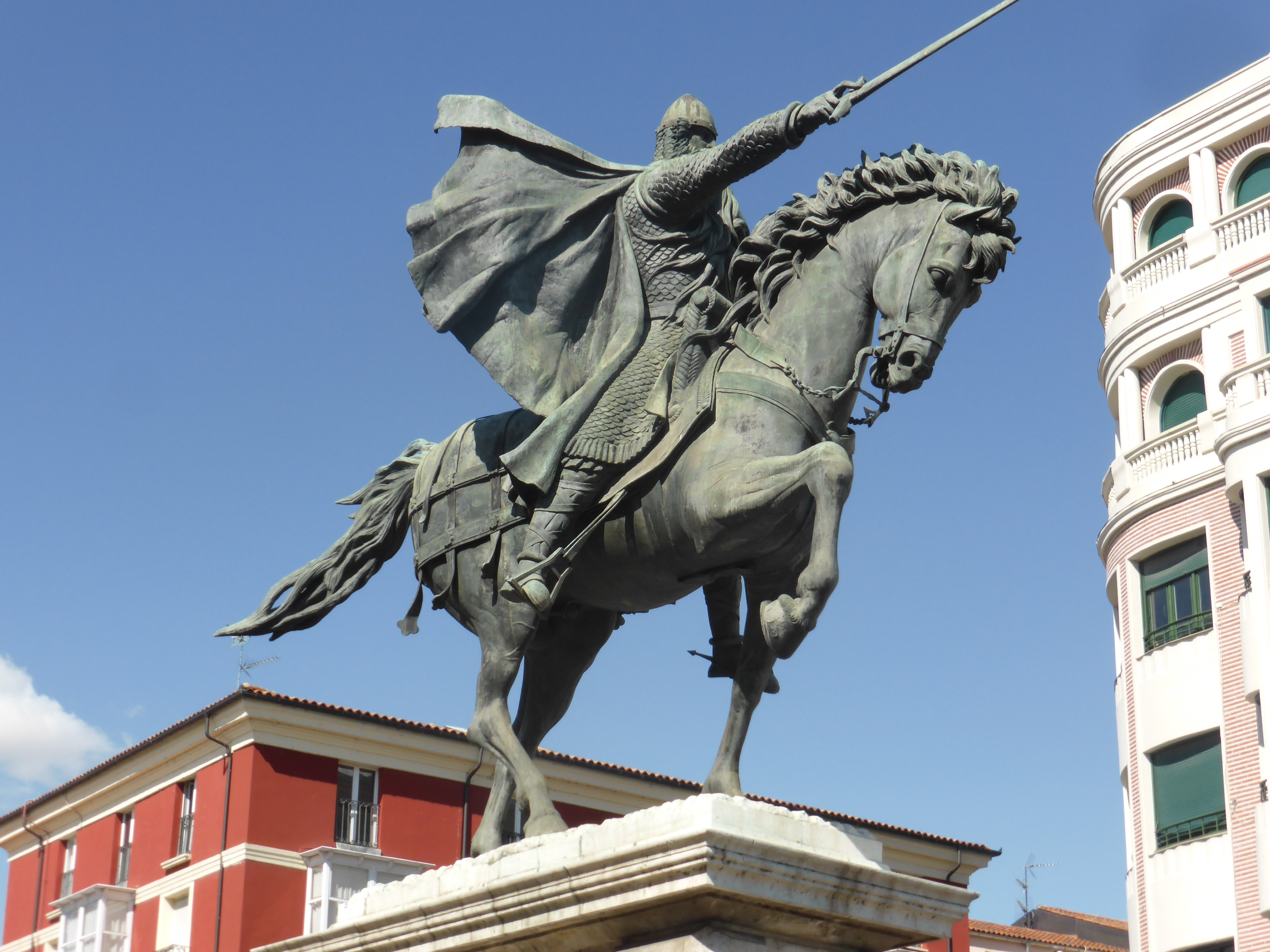 The beautiful scene as we entered Burgos – fall colours and the 800 year old cathedral on the horizonWe thought that this looked like Gavin and Christian!walking back to the hotel at sunset. A great day off!The beautiful cathedral. First started in the 12th and 13th centuries. When finished it did not have the spires … We think it must have really resembled Notre Dame. Later in the 15th century the spires were added.As we arrived we were welcomed by El Cid. His sword ( named Tizona) was recently bought by the government for 1.6 million Euros ( didn’t come with the statue)Hard to see, one of so many fanciful statues about town – this one a fountain with water falling off the umbrellaGoes to show how the evolution of man can go wrong……The Rio Arlanzon River – obviously the scene of high water – note the centuries old (green) walls to prevent flooding.